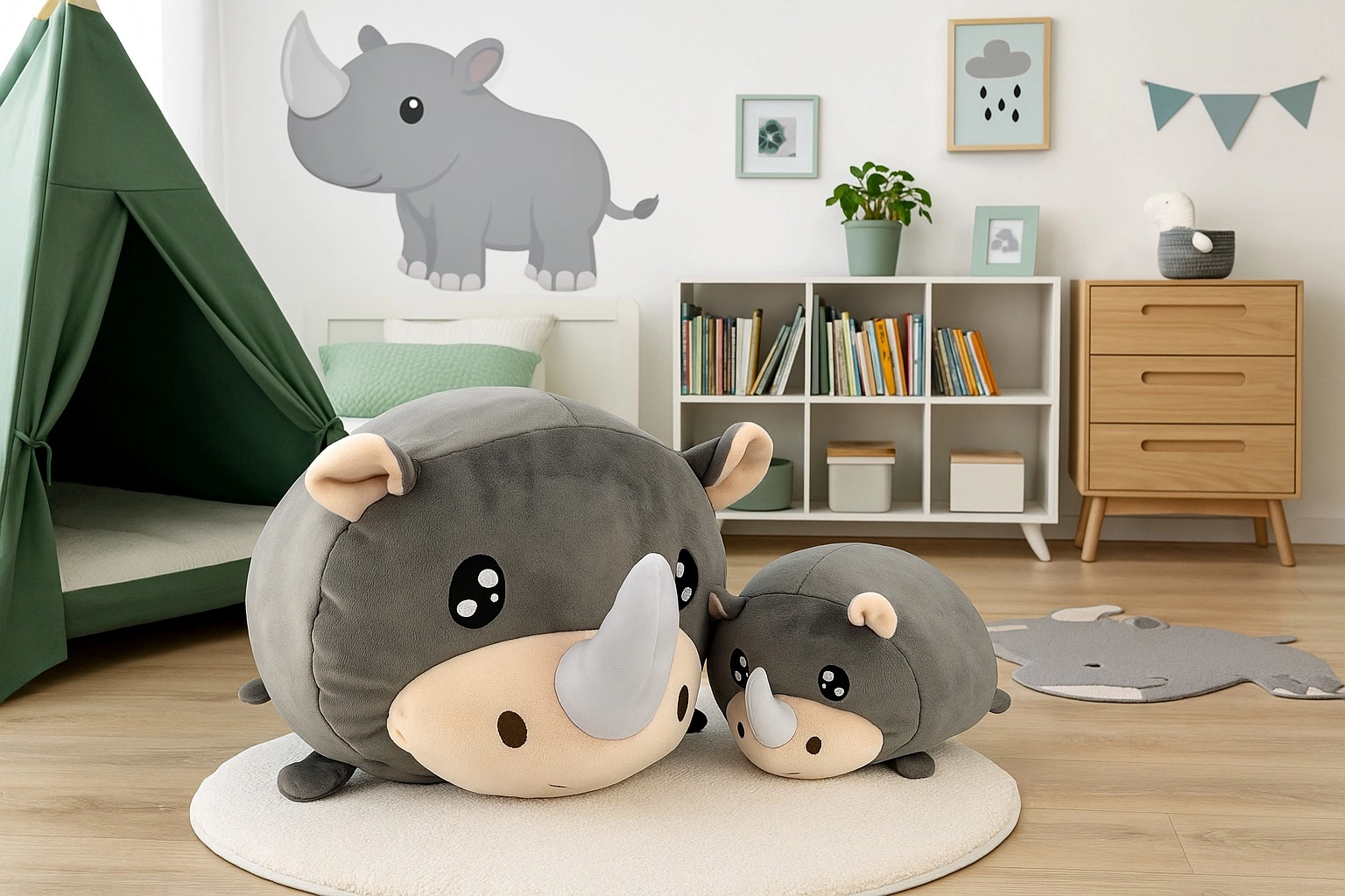 Väiksem ninasarvik (20 cm) on ideaalne vankrisse või võrekasse kaisukaks, suurem (40 cm) sobib autosse padjakeseks, reisidele või hubaseks dekoratsiooniks lastetuppa. Hooldus on lihtne – piisab pesust 30 °C juures.