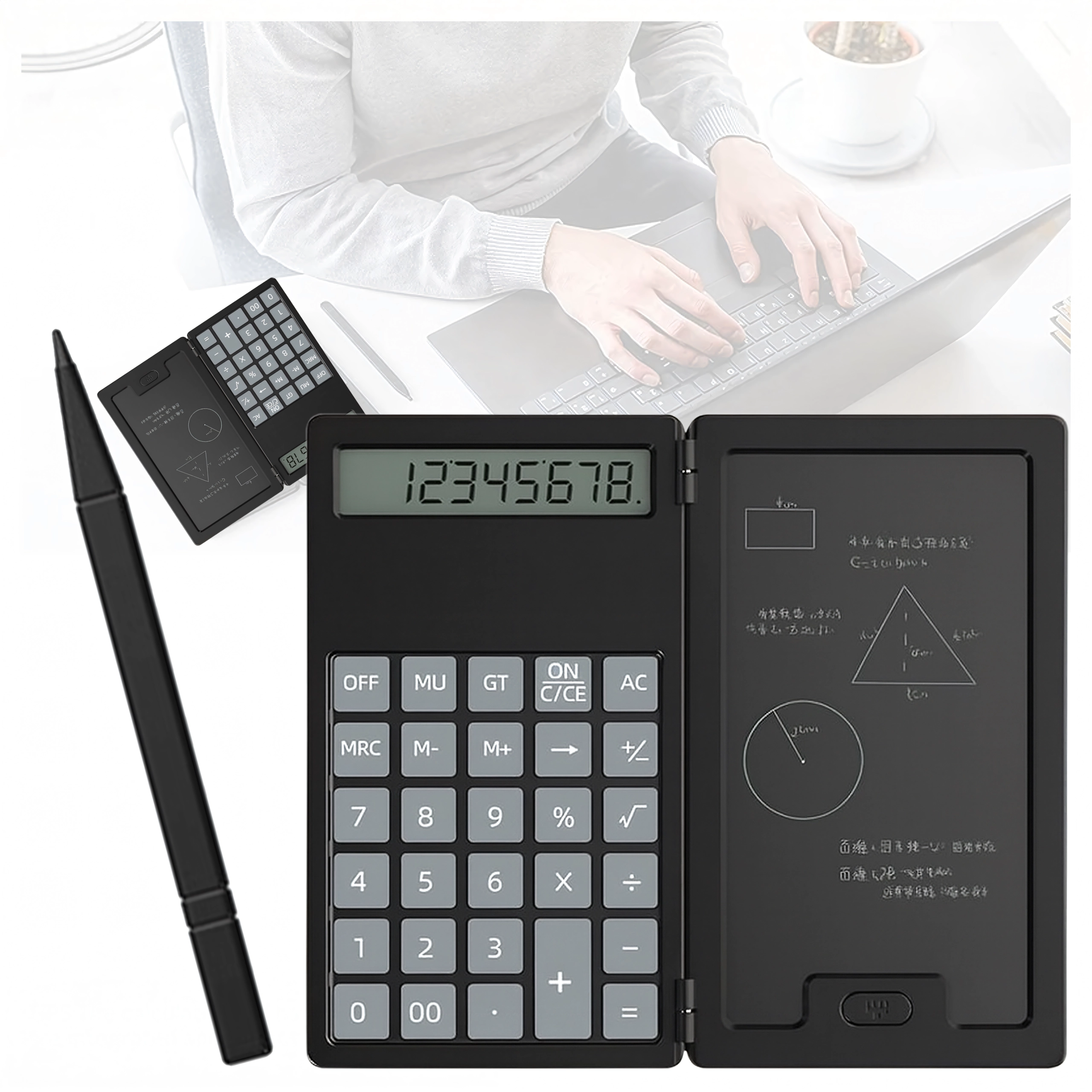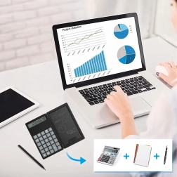 See nutikas kokkupandava korpusega kalkulaator ühendab klassikalise arvutamise praktilise LCD-märkmetahvliga. Tänu kergele ja õhukesele kujule libiseb see kergesti kotti või taskusse ning on alati käepärast kiireteks arvutusteks ja märkmeteks.