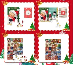 Avastage jõulude võlu selle originaalse advendikalendriga, mis peidab endas 24 eraldi puslet teemadel jõulud, püha Nikolaus ja talvine meeleolu. Iga akna taga on 42 tükki, mis kõigi päevade kaupa kokku pannes moodustavad suure pildi mõõtudega 70 × 50 cm. Ideaalne meelelahutus lastele ja täiskasvanutele, kvaliteetne kartong, sorteerimist lihtsustavad nummerdatud tagaküljed ja VINTAGE stiil, mis loob nostalgilise pühadetunde.