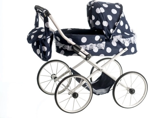 See armas retro nukukäru on suurepärane valik lastele, kes armastavad pere mänge. Musta värvi, valgete täppide ja dekoratiivse pitsi kombinatsioon mõjub stiilselt ja ajatult, rotangist korv annab kärule võluva ilme. Tänu reguleeritavale käepidemele (55 cm) sobitub käru hästi lapse pikkusega.