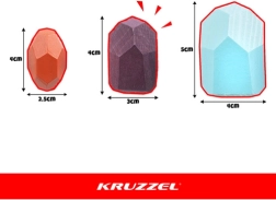 Kruzzeli kivikujulised puiduklotsid toetavad lapse loomulikku arengut. Tänu mitmevärvilisele teostusele ja eri suurustele harjutavad lapsed peenmotoorikat, silma–käe koordinatsiooni ja kannatlikkust. Vastupidav puit on meeldiv puudutusele ja sobib igapäevaseks mänguks.