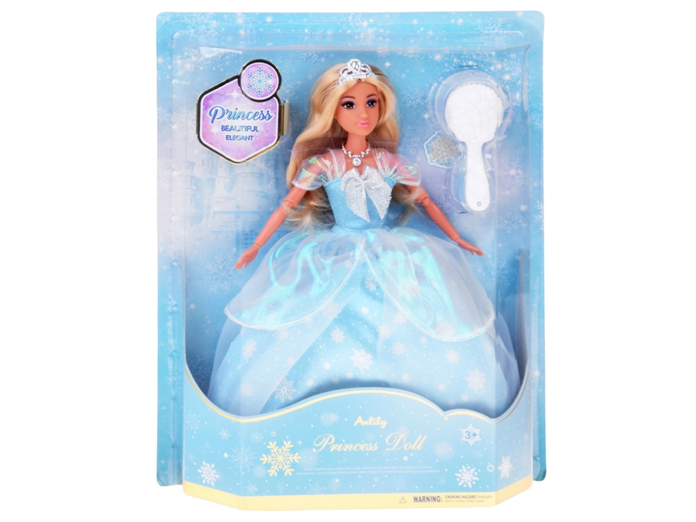 Ela läbi talvine muinasjutt Anlily nukuga, kes särab sinises läikivas kleidis lumehelveste, kergete kihiliste seelikute ja hõbedase tiaraga. Pikad blondid juuksed sobivad suurepäraselt kammimiseks, patside punumiseks ja pidulike soengute loomiseks. Liikuvad käsivarred teevad stiilse poseerimise ja kuningliku elu stseenide mängimise lihtsaks.