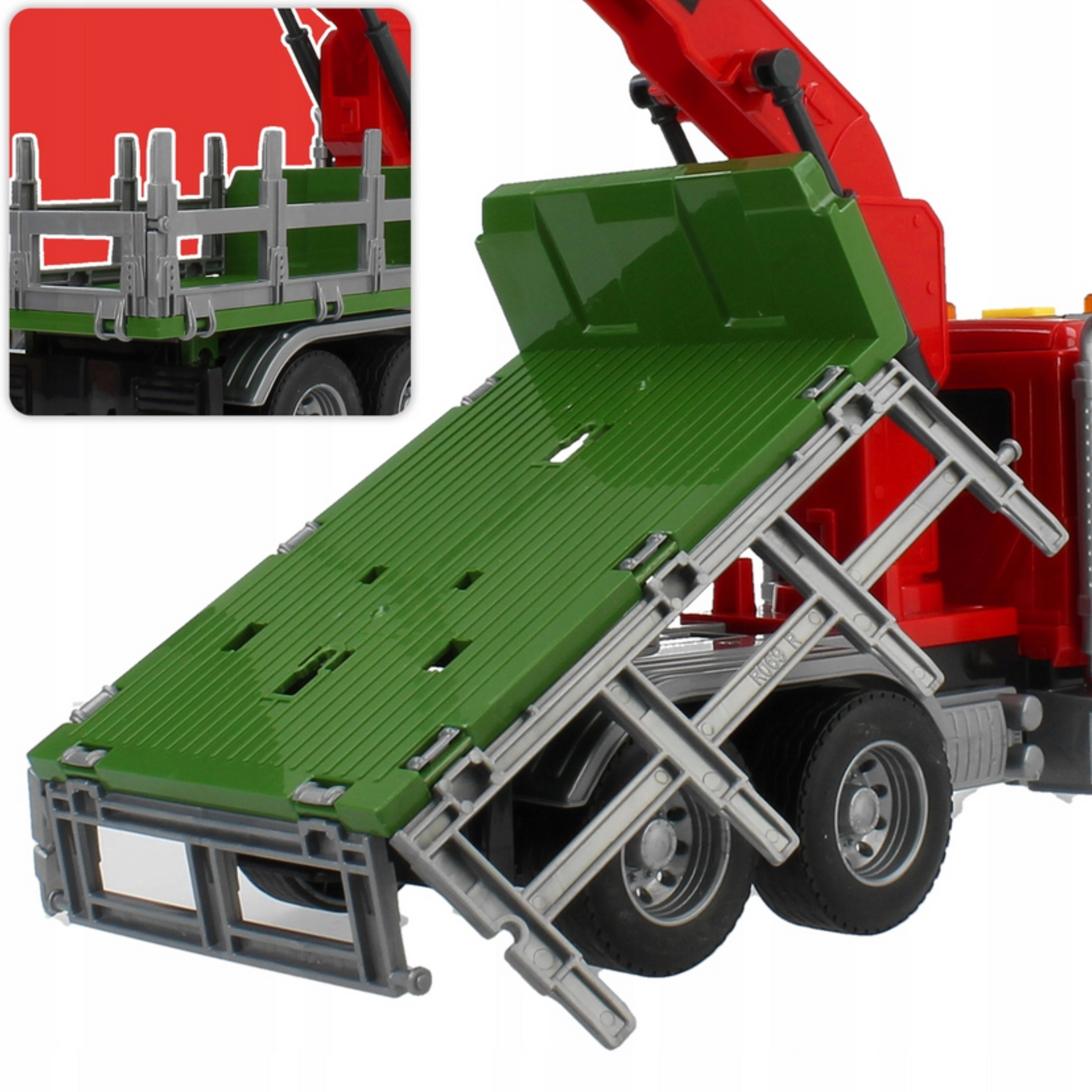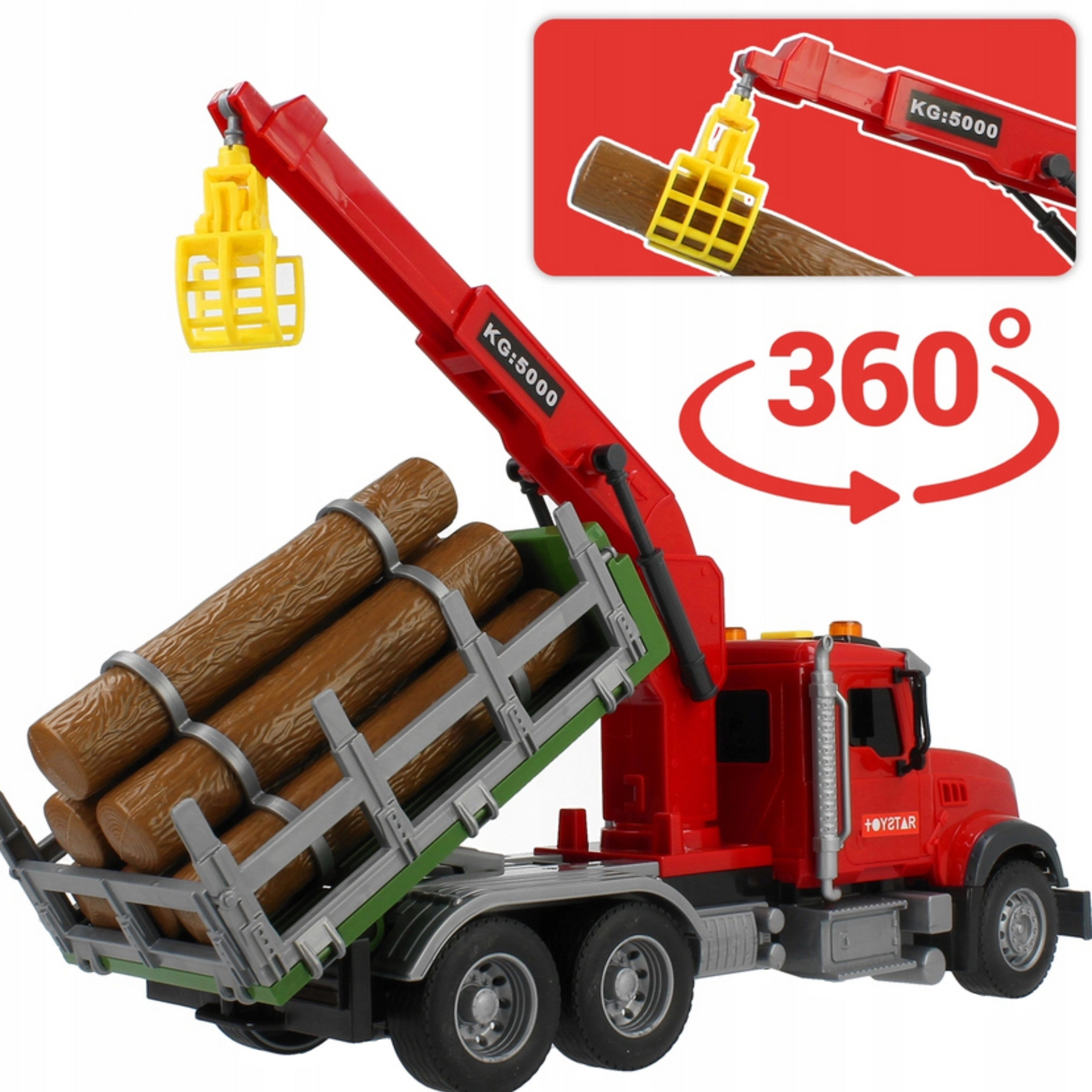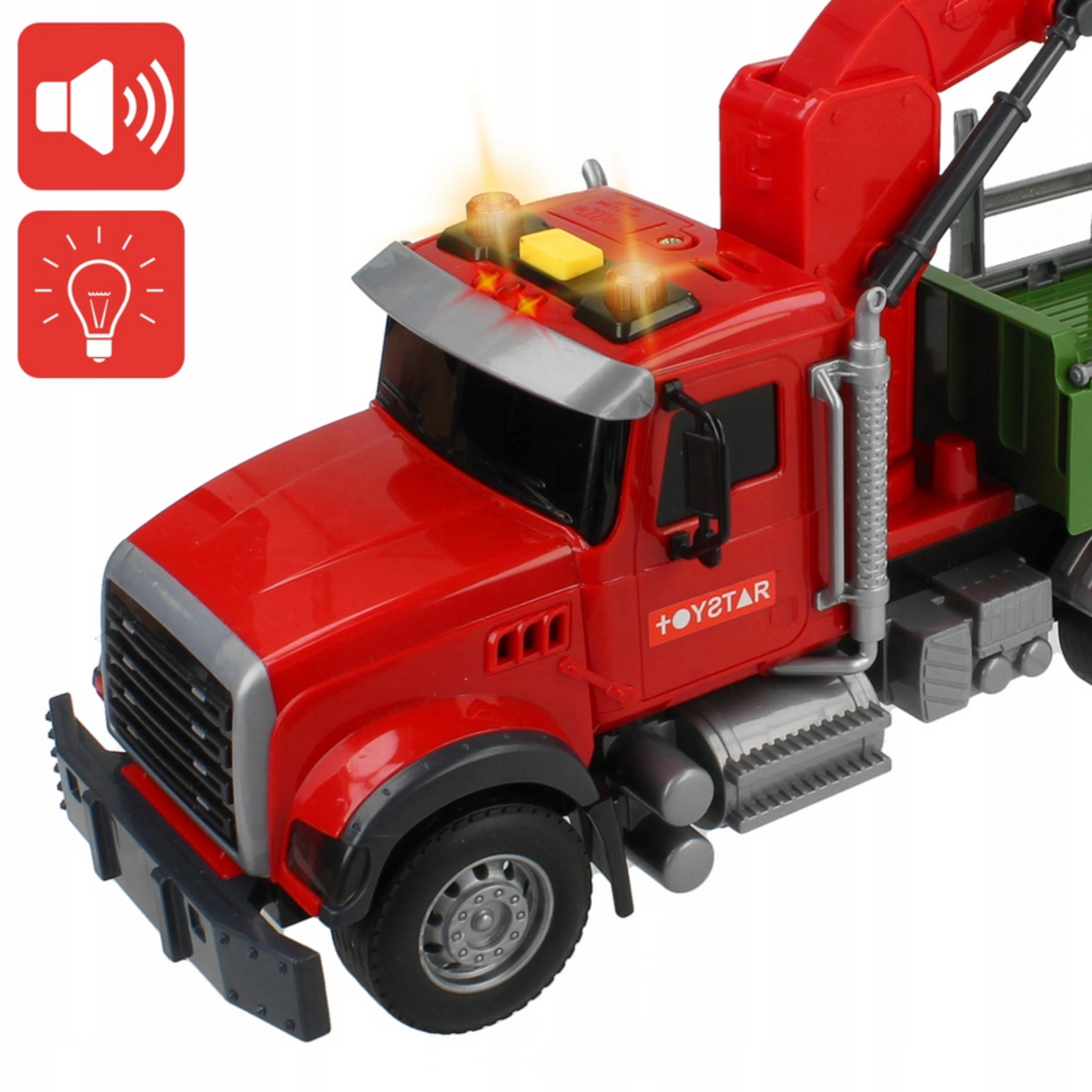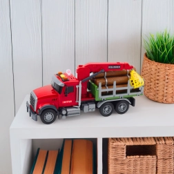 Avastage rasketehnika maailma WOOPIE veoautoga mõõtkavas 1:14. Laps saab käsitsi juhtida pöörlevat kraanat mehaanilise haaratsiga, tõsta kaasasolevaid palke ja jäljendada päris metsatöö protsesse. Mängu võimendavad realistlikud mootori-, signaali- ja kraanatöö helid ning eredad LED-efektid.