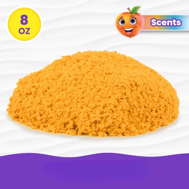 KINETIC SAND Scents pakub meeltega mängimist realistliku märja liiva tundega, mis samas ei kleepu käte külge. Mõnus virsikulõhn ärgitab kujutlusvõimet, samal ajal kui pehme ja vormitav tekstuur toetab peenmotoorika arengut ja keskendumist.