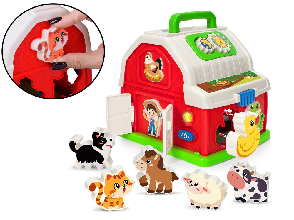 Noodiga nupp käivitab rõõmsad meloodiad, spetsiaalne lüliti süütab tule ning loomanuppude vajutamisel kostavad realistlikud taluhelid.