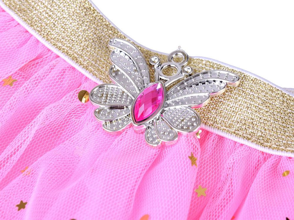 Loo kodus võlumaailm, mis on täis sära ja fantaasiat. Roosa tüllseelik tähtede ja kuudega lainetab kaunilt igal sammul, samal ajal kui kerge plastist kroon ja sobivad aksessuaarid annavad väikestele printsessidele enesekindlust ja särava naeratuse. Komplekt on kooskõlas liblika motiiviga – kerguse ja vabaduse sümbol.