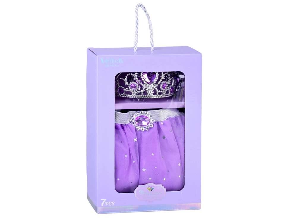 Muudke iga kostümeerimine muinasjutuliseks balliks. Lillakas tütuseelik sädelevate tähtede ja kuudega võlub esimesest pilgust, samal ajal kui hõbedane kroon, kaelakee, sõrmus ja rippuvad kõrvarõngad lillade kivikestega viimistlevad kuningliku välimuse. Elastne vöökoht tagab mugavuse ja kerge selgapaneku.