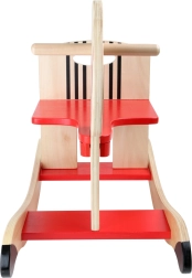 Kiikumine arendab loomulikult suurt motoorikat, tugevdab kehatüve stabiilsust ning toetab koordinatsiooni ja tasakaalutunnet. Elegantne naturaalne puit punaste aktsentidega sobitub suurepäraselt lastetuppa. Toode vajab lihtsat kokkupanekut – komplektis on pildiga juhend.