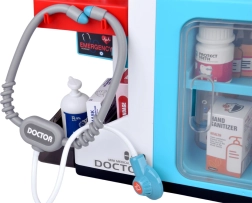 See interaktiivne komplekt muudab lastetoa väikeseks arstipraksiseks, kiirabiks ja apteegiks. Lapsed saavad patsiente uurida, temperatuuri mõõta, „ravimeid“ välja kirjutada ja harjutada maksmist kassas. Realistlikud helid ja ülevaatlik jaam koos kappidega lisavad autentsust ja muudavad mängu kaasahaaravaks elamuseks.