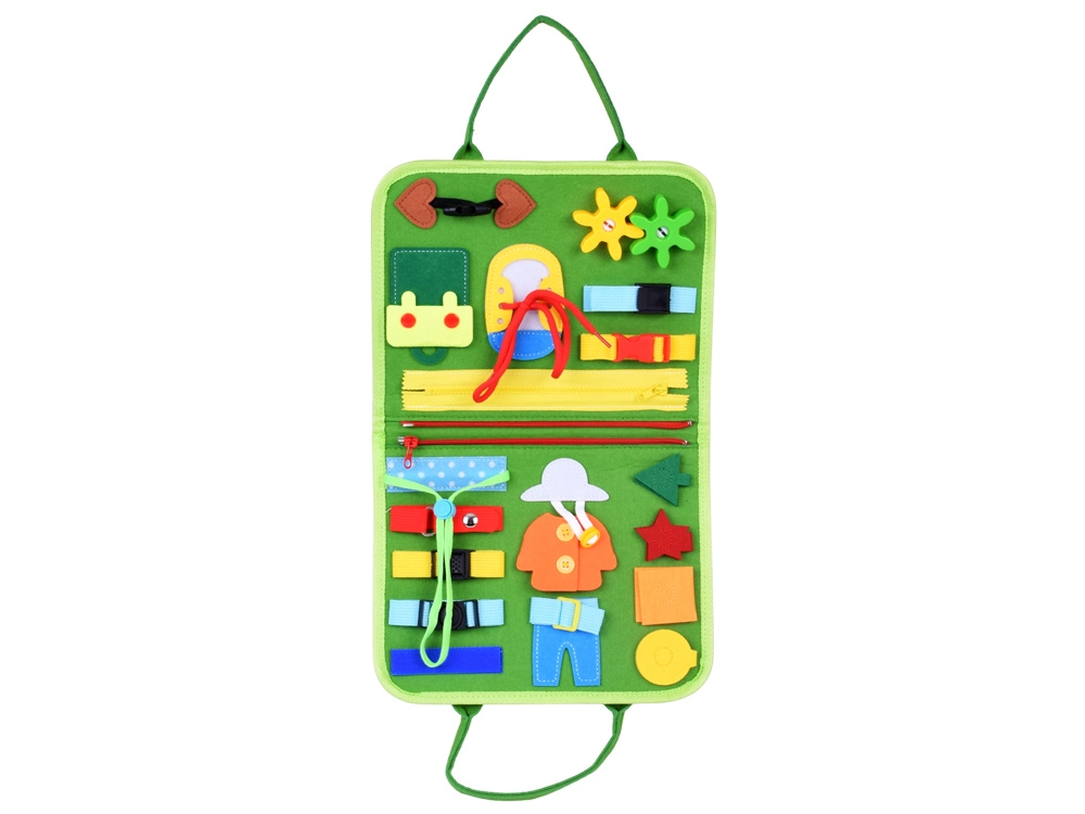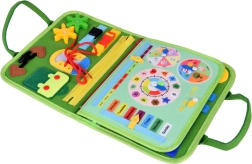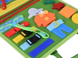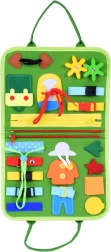Paelutamine, tõmblukud, pannald, nööbid, takjakinnitusega kujundid, köök, lastetuba, aed ja kalender – mitmekesine tegevuste valik motoorika ja loogika arendamiseks.