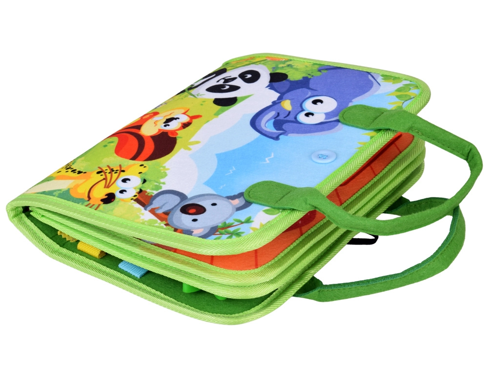 See loominguline raamat arendab laste oskusi mõtestatud mängu kaudu. Seest leiad eemaldatavad pehmed lehed tõmblukkude, pannalde, nööpide, paelte, takjakinnitusega kujundite ja õppeelementidega nagu kell pöörlevate seieritega, nädalapäevad, ilm ja kalender. Lapsed harjutavad silma-käe koordineerimist ja loogilist mõtlemist.
