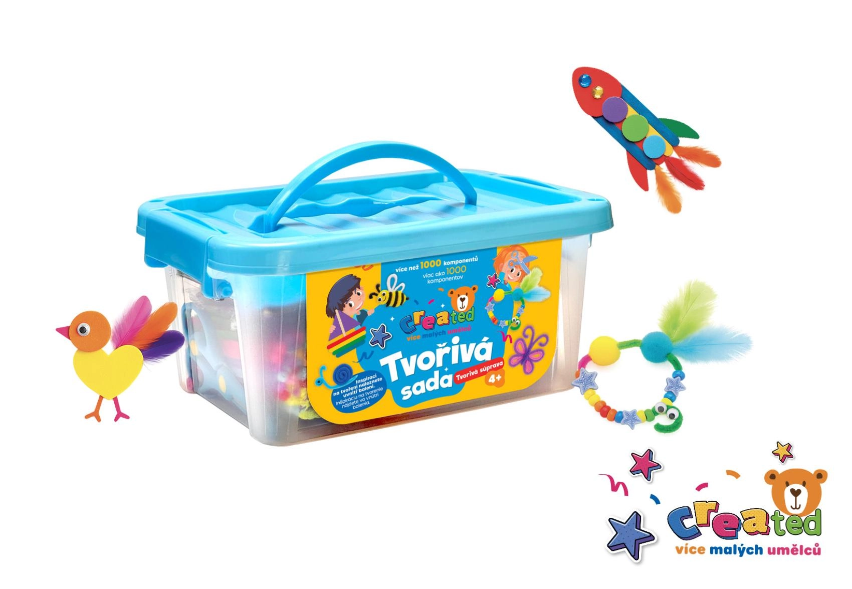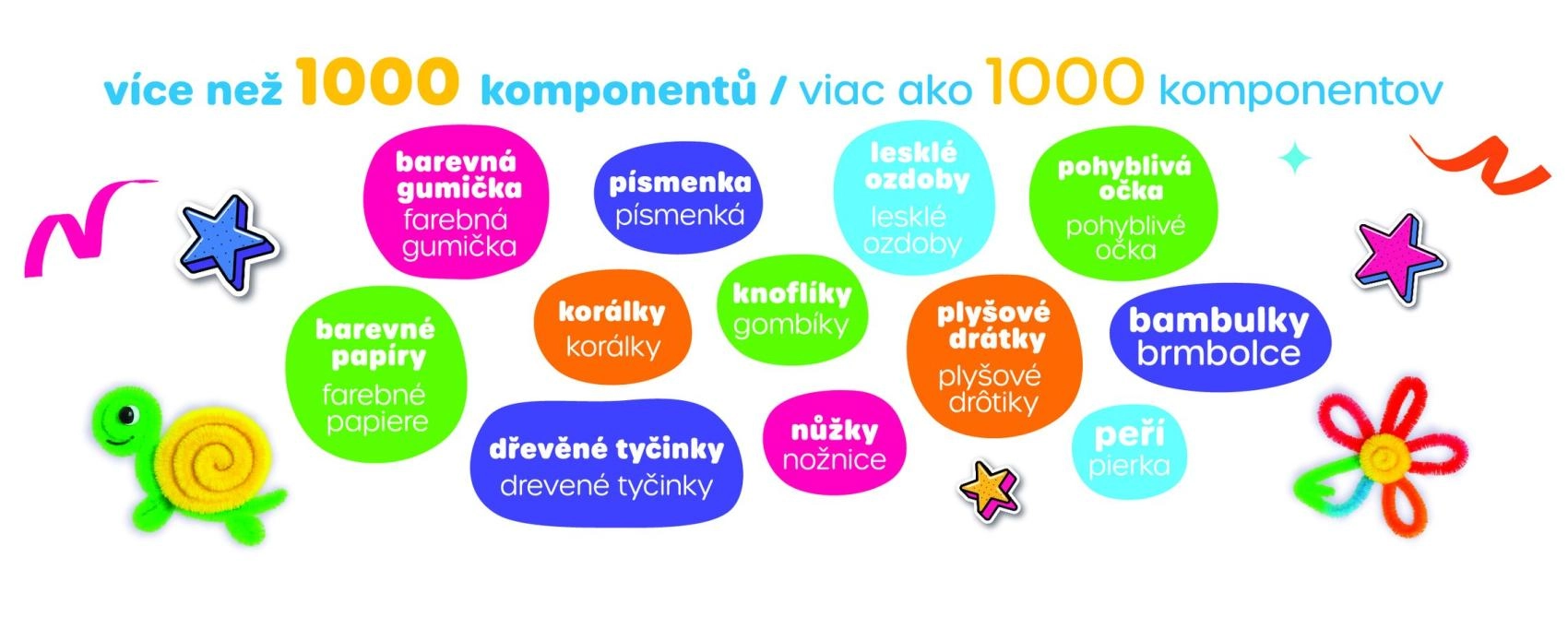 See rikkalik komplekt arendab lapse fantaasiat, peenmotoorikat ja loovust. Tänu mitmekesistele materjalidele saavad lapsed valmistada oma kaunistusi, loomakesi, lilli ja pisikesi dekoratsioone – kodus, lasteaias või reisil. Praktiline karp hoiab kõik detailid koos ja teeb koristamise kiiremaks.