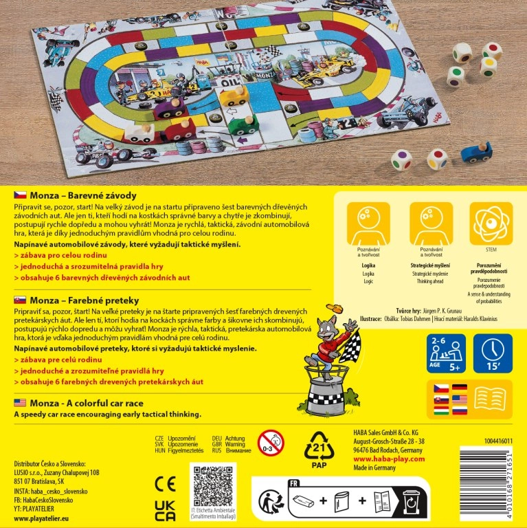 Lõbus peremäng Monza brändilt Haba toob kiired võidusõidud, täis taktikat ja õnne. Tänu lihtsatele reeglitele sobib see ideaalselt nii lastele kui ka täiskasvanutele, mängitakse 2–6 mängijaga ja üks partii kestab vaid u 15 minutit.