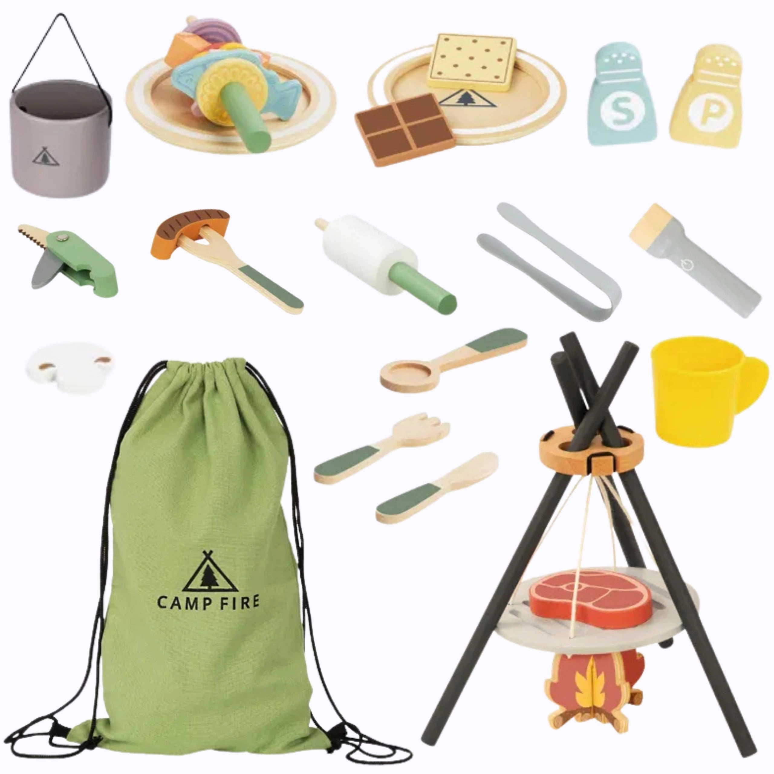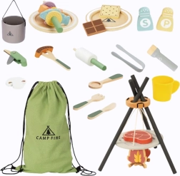 See originaalne komplekt viib lapsed telkimise maailma: telgid, lõkked ja koos sõpradega kokkamine. Puidust osad on mõnusad katsuda ja vastupidavad ning igapäevaseks mänguks turvalised. Ideaalne lastele alates 3. eluaastast, kes armastavad täiskasvanuid matkida ja harjutada sotsiaalseid oskusi.