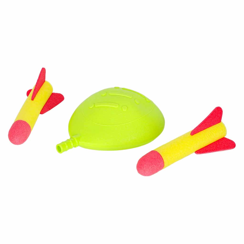 - 4 tegevust ühes komplektis: hüppamine üle takistuse, täpsusvise korvikestesse ja rõngastesse, põnev rakettide väljalaskmine.