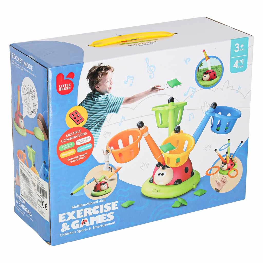 See multifunktsionaalne interaktiivne 4-ühes lepatriinu toob lastele liikumist ja rõõmu: keerutab hüppetakistust, särab ja teeb helisid, toimib raketivisurina ning pakub täpsusviset. Suurepärane koordineerimise, reflekside ja täpsuse arendamiseks nii toas kui õues – lapsed naudivad aktiivset mängu üksi või grupis.
