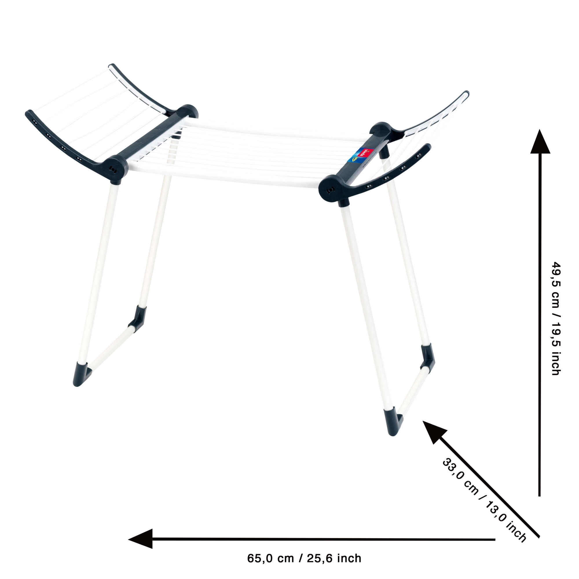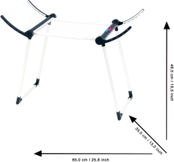 Konstruktsioon on tugev ja stabiilne tänu topeljalgadele, kuivati on valget värvi mustade detailidega ning sel on kaks kokkuklapitavat külge suurema kuivatuspinna jaoks. Pärast mängu saab selle hõlpsasti kokku voltida kompaktseteks mõõtmeteks, säästes nii laste toas ruumi.