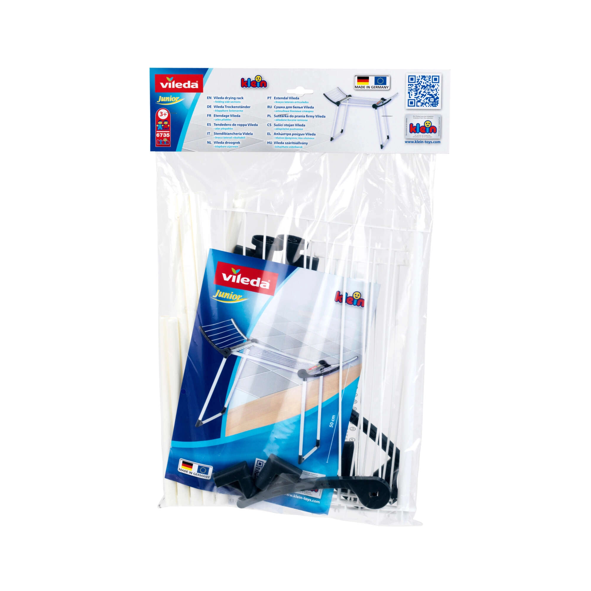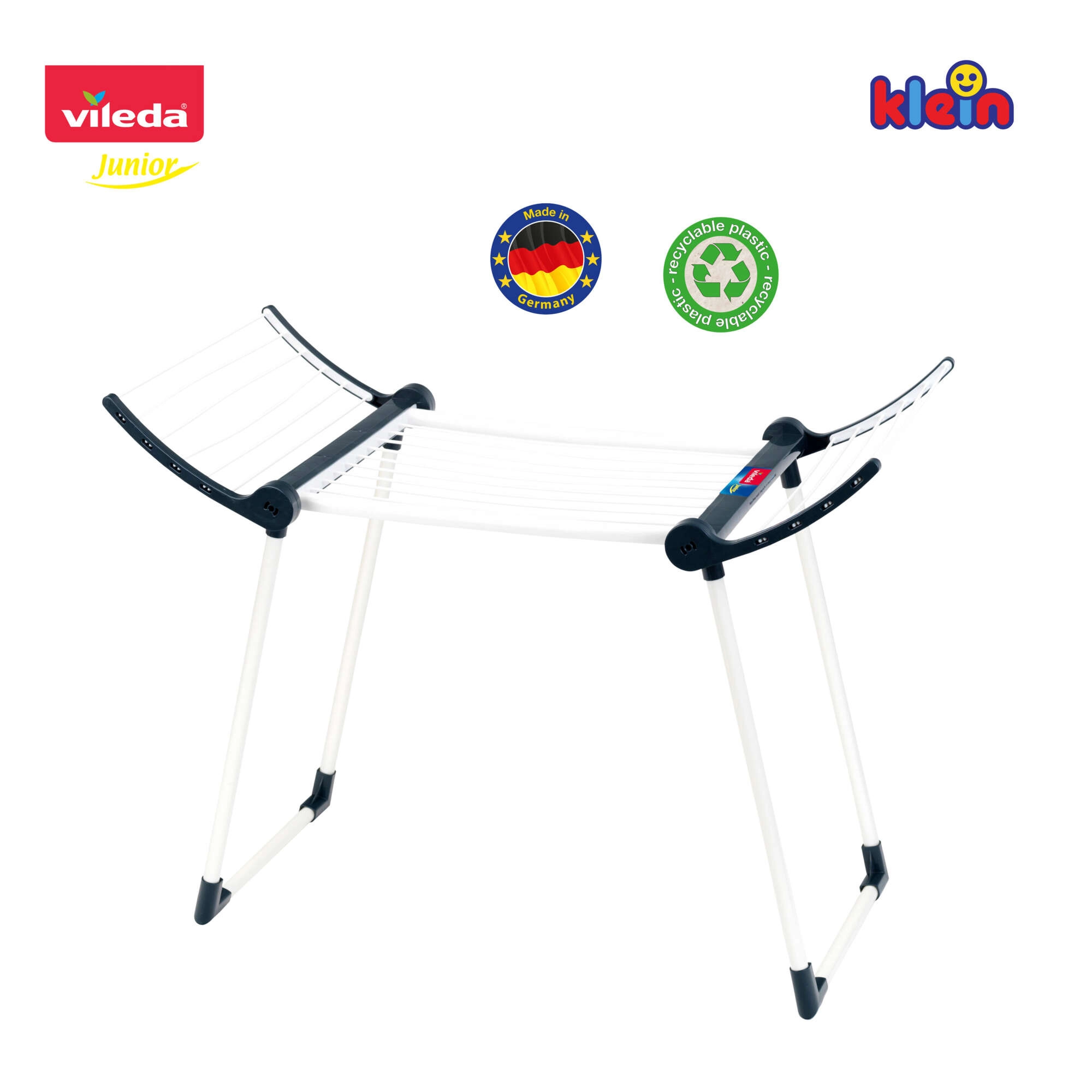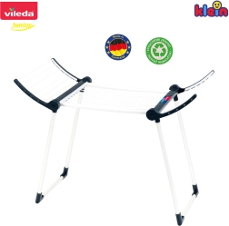 Realistlik KLEINi kaubamärgi Vileda laste pesukuivati on tõetruu koopia päris kuivatist ja pakub lastele turvalist ning lõbusat kodutööde jäljendamist. See on valmistatud detailidele rõhku pannes, on stabiilsete topeljalgadega, kahe kokkuklapitava küljega ja kerge. Tänu võimalusele kokku voltida väiksemateks mõõtmeteks ei võta see kasutuseta ruumi.