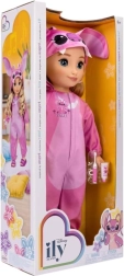 See stiilne nukk pikkade blondide juuste ja siniste silmadega on valmis pidžaamaseiklusteks. Roosa looma-teemaline onesie „Inspired by Angel” kapuutsi, kõrvade ja trükiga on puudutades pehme, mängimiseks mõnus ja fotodel suurepärane. Tänu pehmele torsile sobib see hästi kaisutamiseks, samas kui tugevad käed, jalad ja pea tagavad stabiilsuse poseerimisel.