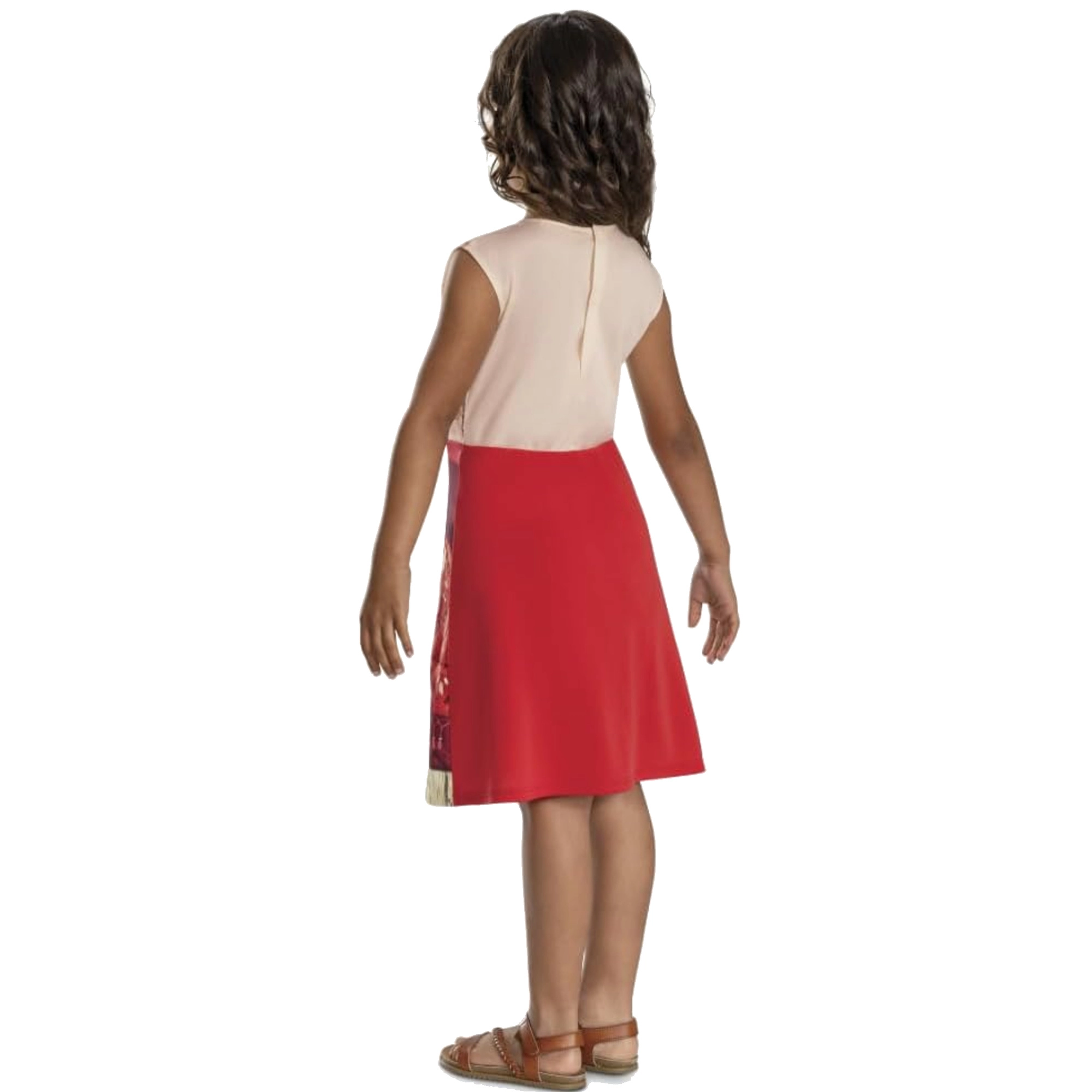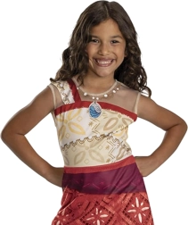 Võluge väikesed Disney muinasjuttude fännid stiilse kostüümiga, mis on inspireeritud kangelasest Vaianast (Moana). Kergete, mugavate kleitide komplekt punakas-kreemsetes toonides polüneesia motiividega ja integreeritud „kaelakeega“ sinise ripatsiga on ideaalne karnevaliks, maskiballile ja kodusteks rollimängudeks. Tänu kvaliteetsele 100% polüestrile on seda lihtne selga panna ja see hoiab hästi kuju.