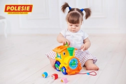 See armas rong on ideaalne mänguasi väikelastele. See ühendab populaarse tõmmatava sõiduki hariva sorteerija ja lihtsa kellaga, nii et laps saab mängides õppida. Tänu kuuele erinevale kujundile harjutab laps peenmotoorikat ja loogilist mõtlemist.