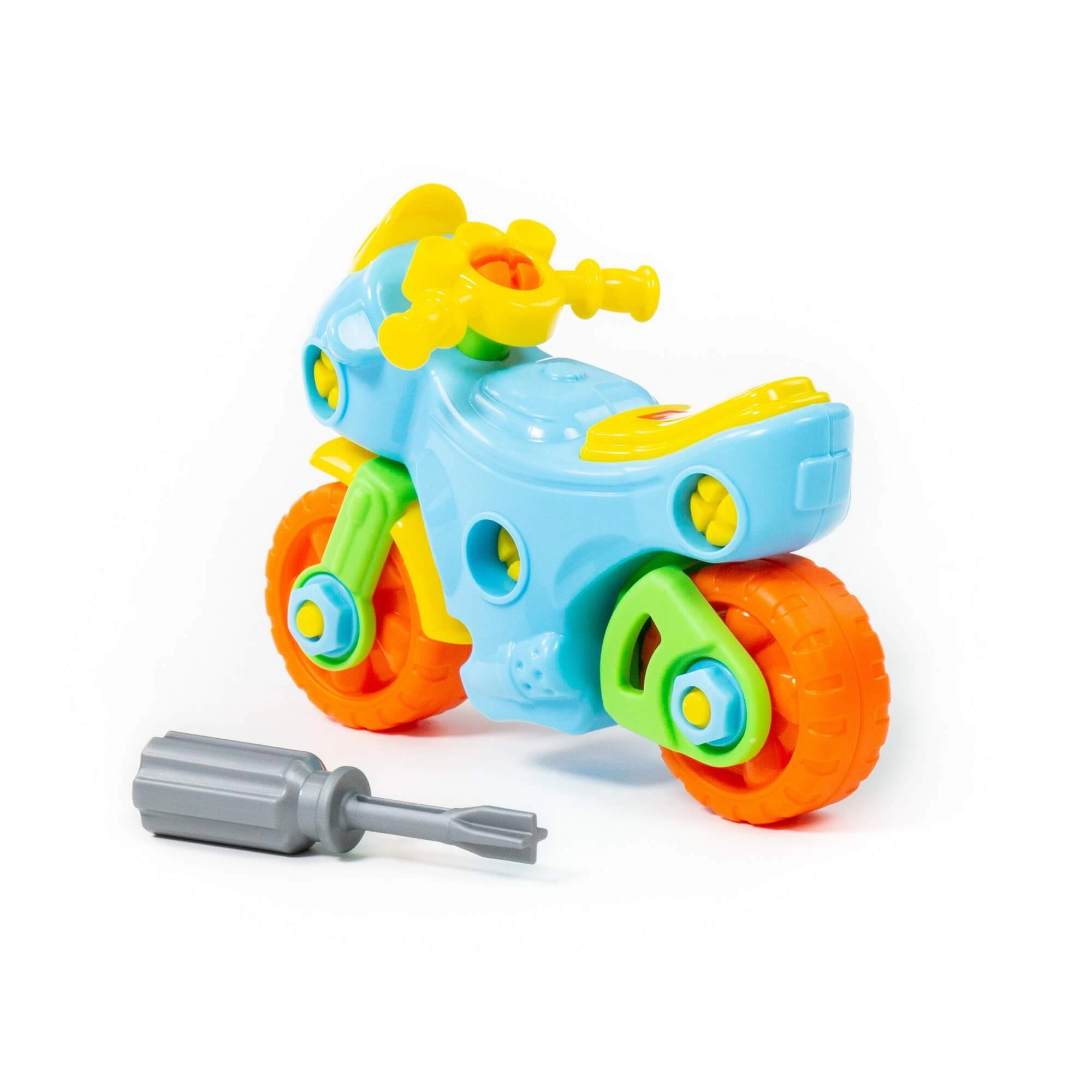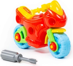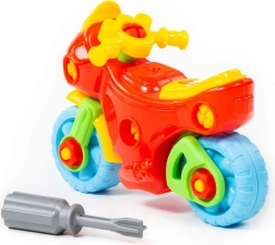 See loominguline kruvitav mootorratas toetab õppimist läbi mängu: lapsed harjutavad käe-silma koordineerimist, õpivad kokkupaneku põhimõtteid ning naudivad rohkelt lõbu nii monteerimisel kui ka demonteerimisel. Pakendis on plastikust kruvikeeraja, mis sobib väikestele kätele, ning suured “kruvid” lihtsaks käsitsemiseks.