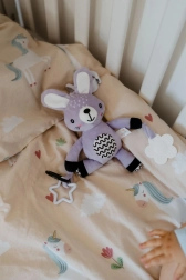 Armas pehme jänku beebidele alates 0 kuust, praktilise klambriga vankri, turvatooli või võrevoodi külge. Pakub õrna kõrinat, ülipehmet materjali ja ohutuid närimislelusid, mis toetavad meeli ja peenmotoorikat. Sertifitseeritud Tšehhis tagab ohutuse kõige pisematele.