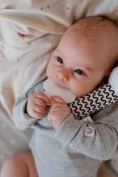 Alumine lillekujuline närimislelu on igemetele õrn ja aitab esimeste hammaste lõikumisel. Kontrastne must-valge muster soodustab kõige pisemate visuaalset arengut. Pehme, ohutu plüüs on meeldiv puudutusele ja sobib alates sünnist. Toode on sertifitseeritud Tšehhis, vastab kõrgetele ohutusstandarditele ning on suurepärane kingitus beebidele 0m+.