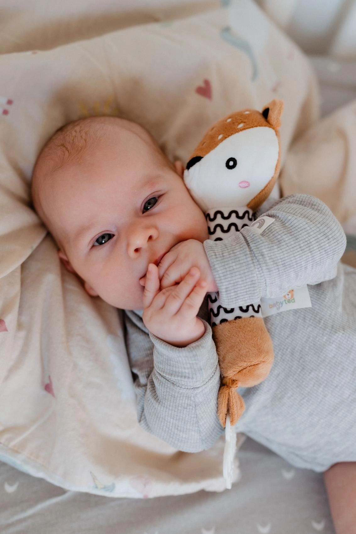 Otsite esimest meelte arendamise mänguasja vastsündinule? See metskits ühendab piiksu, õrna närimislelu ja plüüšist kaisuka ühes. Pikk, pehme keha sobitub hästi pisikestesse peopesadesse ja toetab haaramist, samal ajal kui vajutusel kostev piiks õrnalt stimuleerib kuulmist ja loomulikku uudishimu.