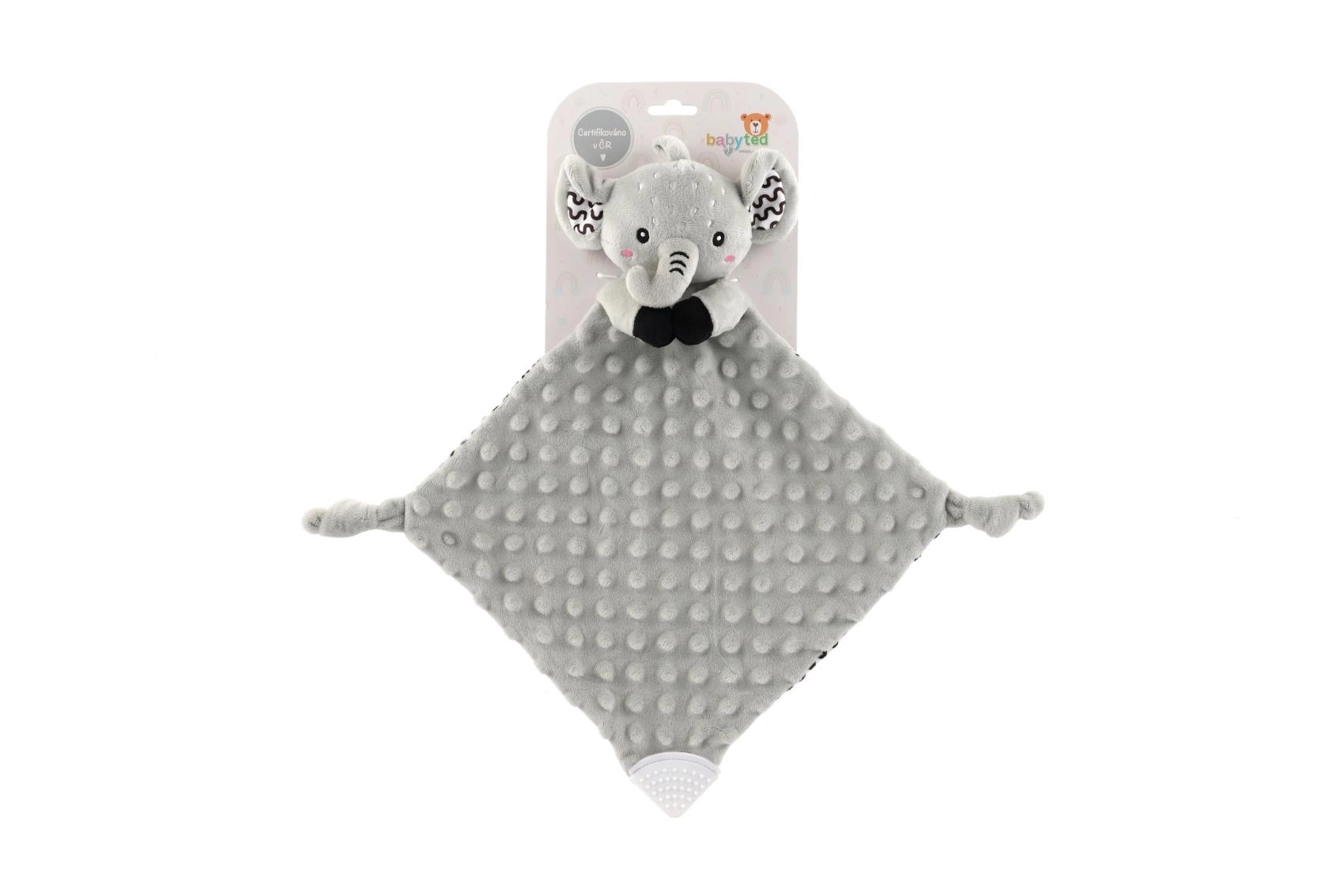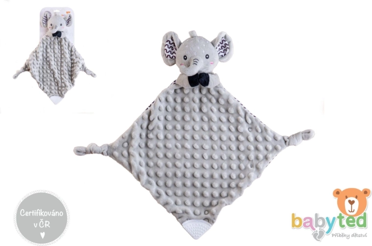 Pehme elevandikujuline unelapp brändilt BABYTED pakub beebile turvatunnet ja rahulikku und. Ülimalt pehme minky-materjal 3D täppidega kutsub kaisutama, peidetud õrn kõrin arendab kuulmist ning pehme silikoonist närimisnurk leevendab igemavalu hammaste lõikumisel. Sobib alates sünnist, sertifitseeritud Tšehhis.