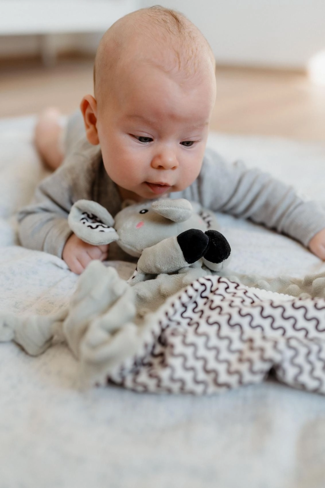 Ülipehme materjal reljeefsete täpikestega pakub beebile mugavust, kindlustunnet ja õrna sensoorset stimulatsiooni nii kaisutades kui uinudes.