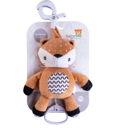 Lihtsa kinnituse tagab vastupidav riputusklamber, nii et kitsetall saab beebit saata vankris, turvatoolis, võrevoodil või mängukaares. Kontrastne muster kõhul ja õrnad detailid toetavad nägemistaju ja peenmotoorika arengut.