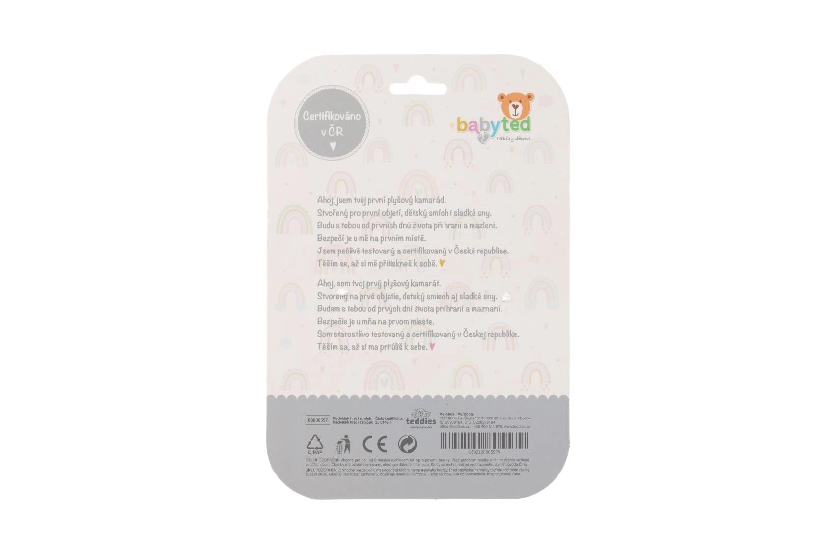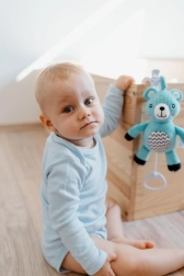Pehme plüüsist materjal on mõnus katsuda ja sobib esimeste tekstuuride avastamiseks, samal ajal kui kontrastsed mustrid kõhul toetavad visuaalset taju. Mänguasi on Tšehhis sertifitseeritud ning sobib lastele alates sünnist (0m+).