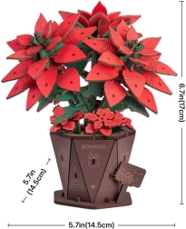 See elegantne 3D puidust jõulutäht lillepotis koosneb laseriga lõigatud osadest, mis on kiireks ja intuitiivseks kokkupanekuks nummerdatud. Tänu tugevatele ühendustele hoiab mudel hästi kuju ja loob pärast kokkupanekut muljetavaldava pühadekaunistuse realistlike lehtede ja kroonlehtedega.