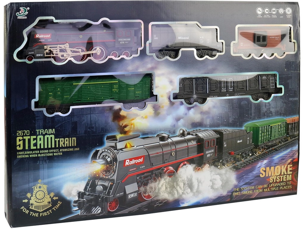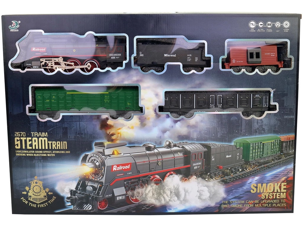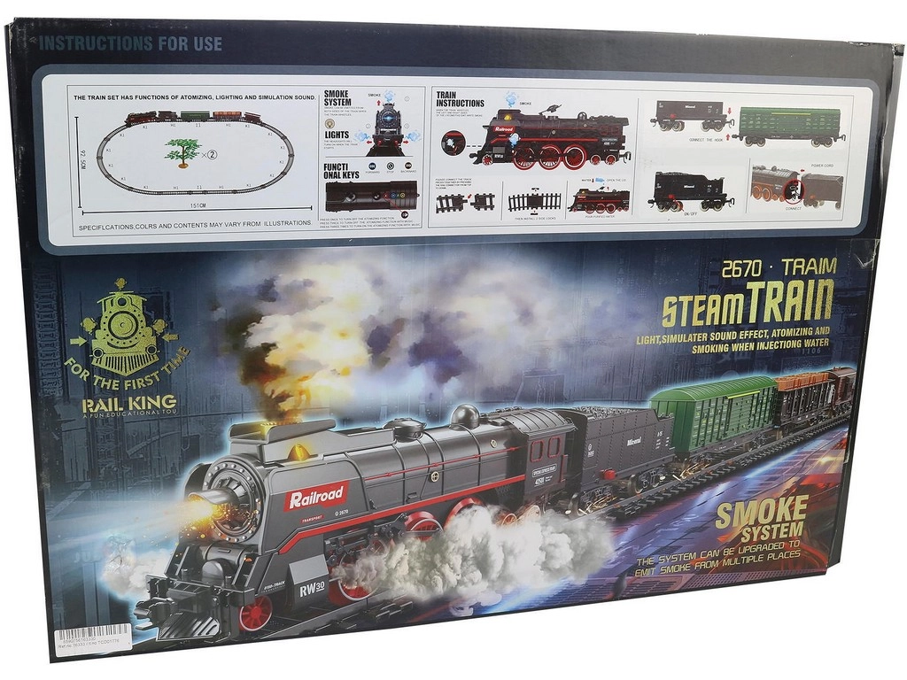 Rõõmusta lapsi realistliku patareitoitel aururongiga, mis pakub korstnast ja alusraamist tulevat päris auru efekti, valgus- ja heliefekte, hõlpsasti kokku pandavat rada ning suurt 68-osalist komplekti mõõtmetega kuni 151 × 92,5 cm. Ideaalne loovaks mänguks ja esimesteks raudtee-seiklusteks.