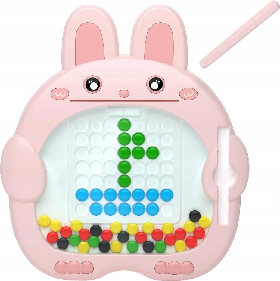 See loov magnettahvel armsa jänesekujuga pakub lastele tegevust pikaks ajaks. Magnetpliiats tõstab ja liigutab värvilisi nuppe võres kergesti, nii et lapsed saavad pilte luua samm-sammult sisestatud näidiste järgi või täiesti oma äranägemise järgi.