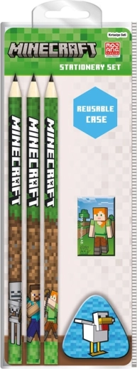Praktiline Minecrafti litsentsiga koolikomplekt rõõmustab iga fänni ja koolilast. Sisaldab kõike kirjutamiseks ja joonistamiseks: 15 cm joonlaud, kustukumm, teritaja, pastapliiats ja HB pliiats.