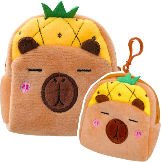 Armas plüüšist rahakott kapübara kujuga ja kollase ananassi motiiviga on ideaalne nii lastele kui ka pehmete aksessuaaride armastajatele. See on kerge, mõnus puudutada ning tänu kompaktsetele mõõtudele 9,5 × 8 cm mahub see käekotti, seljakotti või pinalisse. Lukuga kinnitus hoiab pisiasjad kindlalt sees ning plastikust klipp võimaldab lihtsat kinnitamist võtmete või koti külge.