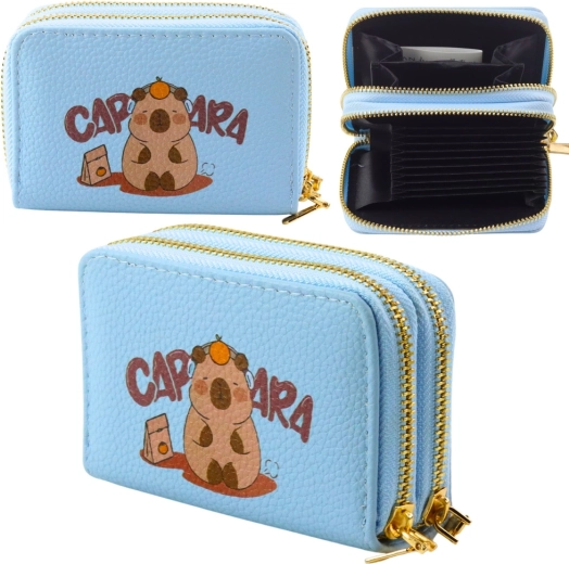 Kompaktne ja armas CAPYBARA motiiviga rahakott pakub kahte eraldi lukuga kambrit, kaartidele ja sularahale mõeldud harmoonika-stiilis vaheseinu ning vastupidavat, nahatekstuuriga pinda. Ideaalne kaartidele, rahatähtedele ja müntidele käekotti, seljakotti või taskusse.
