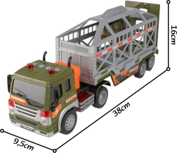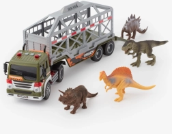 See detailselt kujundatud veok eemaldatava haagisega toob lastele realistliku tegevuse ja seikluse. Tänu hõõrdsõidule liigub see tõukamisel edasi, samal ajal kui tuled ja helid (mootor, signaal, tagurdamine, sireen) võimendavad mänguelamust. Puur koos langetatava rambiga võimaldab dinosauruste lihtsat peale- ja mahalaadimist.