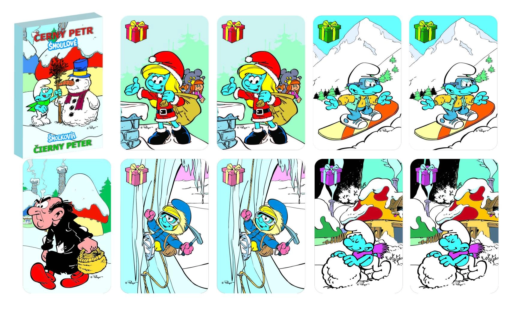 Traditsiooniline Musta Peetri kaardimäng talvise smurfiteemaga pakub rõõmu nii lastele kui täiskasvanutele. Mängijad otsivad sobivaid paare, püüdes vältida Musta Peetri kaarti. Lihtsad reeglid, kiired voorud ja lõbusad SMURFIDE illustratsioonid teevad sellest mängust ideaalse valiku pereõhtuteks ja reisidele.