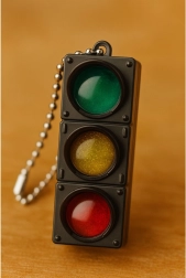 Valmistatud vastupidavast plastist ja metallist ketiga mugavaks kinnitamiseks. Sobib harivaks mänguasjaks liiklusreeglite õppimiseks ning stiilseks igapäevaseks aksessuaariks.