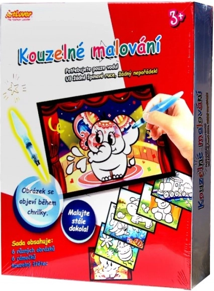 See loominguline komplekt rõõmustab nii väikseid kunstnikke kui ka vanemaid. Tänu spetsiaalsele valgele kihile kaartidel ilmuvad värvid kokkupuutel veega ja kaovad uuesti kuivamisel. Nii on meisterdamine ilma värvide ja segaduseta ning ideaalne nii koju kui ka reisile.