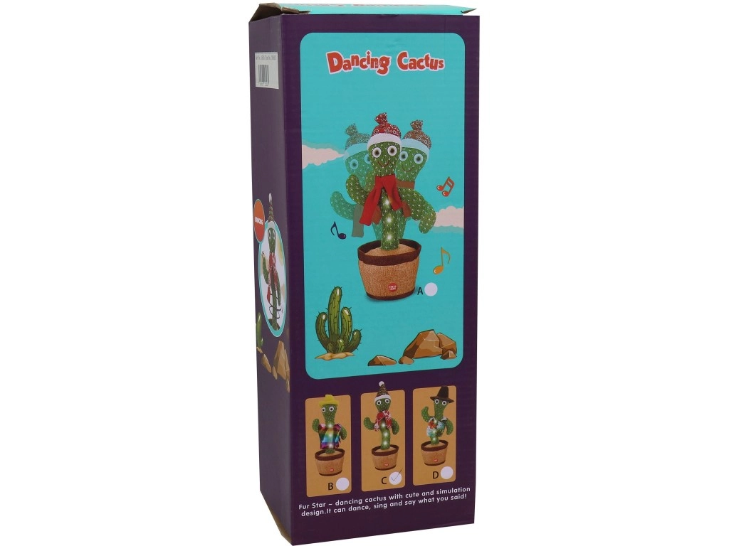 Too rõõmu igasse ruumi selle valgusega tantsiva kaktusega, mis tantsib rütmis, kordab hääli ja helisid ning pakub kuhjaga nalja nii lastele kui täiskasvanutele. Piisab patareide sisestamisest, lülita ON ja vajuta märgitud kohta.