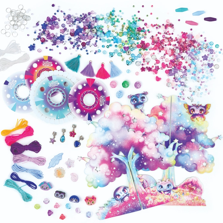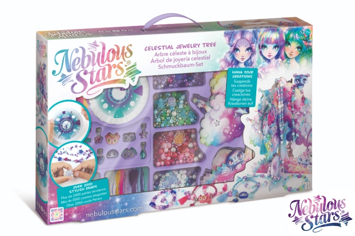 Avasta loomise maailm Nebulous Stars loomingulise komplektiga, mis rõõmustab iga väikest ehetekunstnikku. Pakendis on kõik vajalik ainulaadsete käevõrude ja kaelakeede valmistamiseks – alates värvilistest nööridest ja helmestest kuni stiilsete ripatsiteni. Valminud ehted saab elegantselt riputada Tähepuule, mis toimib kauni aluse ja toakaunistusena.