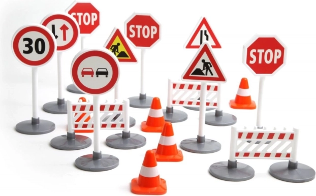 Iga märk on ligikaudu 16 cm kõrge ning valmistatud kvaliteetsest ja vastupidavast plastist, mis peab vastu igapäevasele kasutusele nii kodus kui lasteaias. Komplekt sobib täienduseks autoradadele, mänguvaipadele ja temaatilistele ehitusprojektidele.