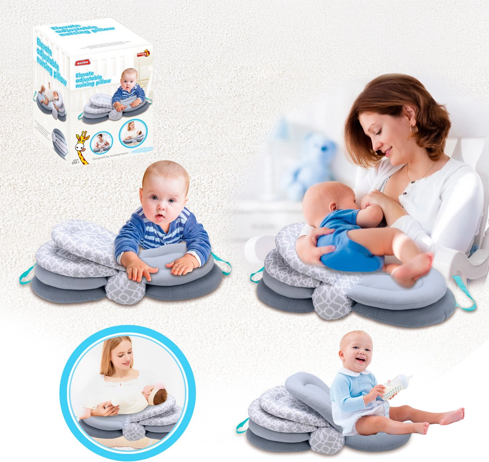 - 3‑in‑1 kasutus: rinnaga toitmine, pudelist söötmine, tugi istumisel