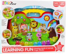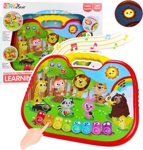 Avastage nutikalt kujundatud interaktiivne tahvel, mis tutvustab lapsi mängulisel viisil loomade maailmaga. Puutepaneel reageerib sõrme liikumisele, aktiveerides loomahääled, meloodiad ja harivad kõlahüüded. Keelerežiimi (inglise ja hispaania keel) abil laiendab sõnavara ja toetab arusaamist.