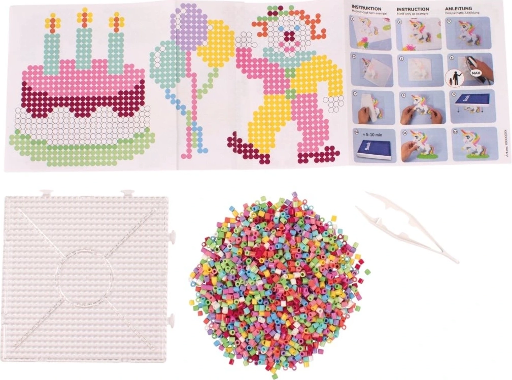 - 12 000 tk triigitavaid pärleid, ruudukujuline plaat, värvilised šabloonid, triikimispaber, pintsetid