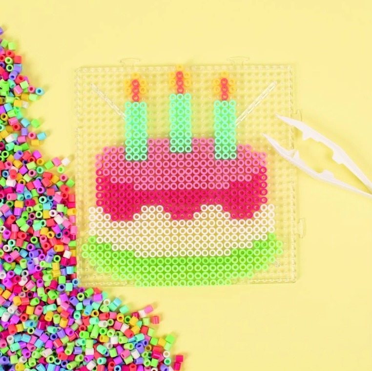 - Kõik ühes: ruudukujuline alus, värvilised šabloonid, triikimispaber ja pintsetid.